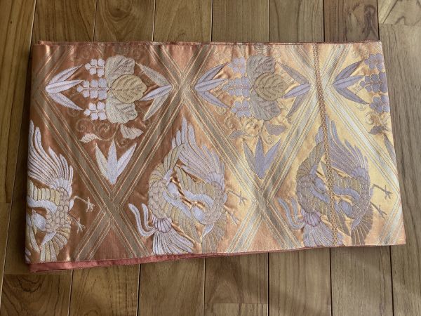 - 銀座 ちた和 帯 向かい鳳凰 桐 橙色 袋帯 金通し 六通 縁起物 送料無料