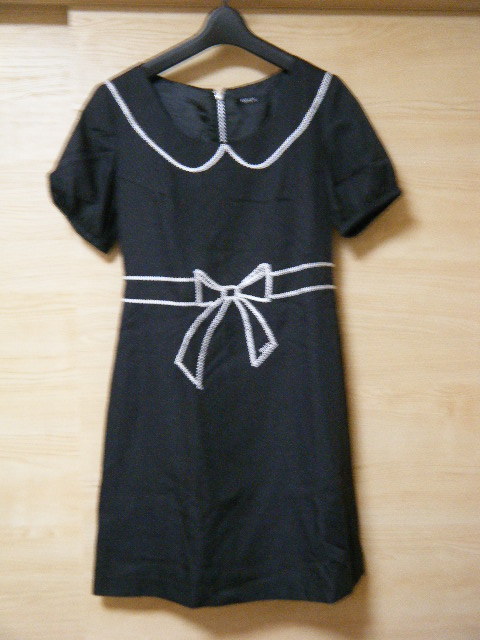 - MILK 半袖ワンピース R7680 黒 刺繍リボン柄 ミルク