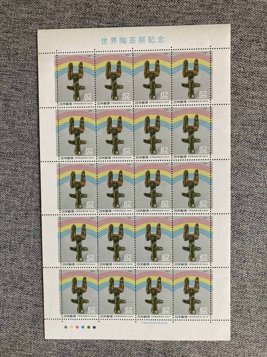 - ★未使用 世界陶芸祭記念 土をうたう 平成3年 1991年 記念 切手シート 62円 20枚