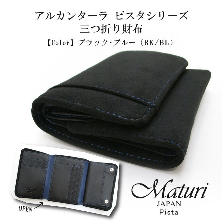 - 【Maturi マトゥーリ】 アルカンターラ ピスタシリーズ 三つ折り財布 コンパクト MR-099 BK/BL 定価25000円 新品