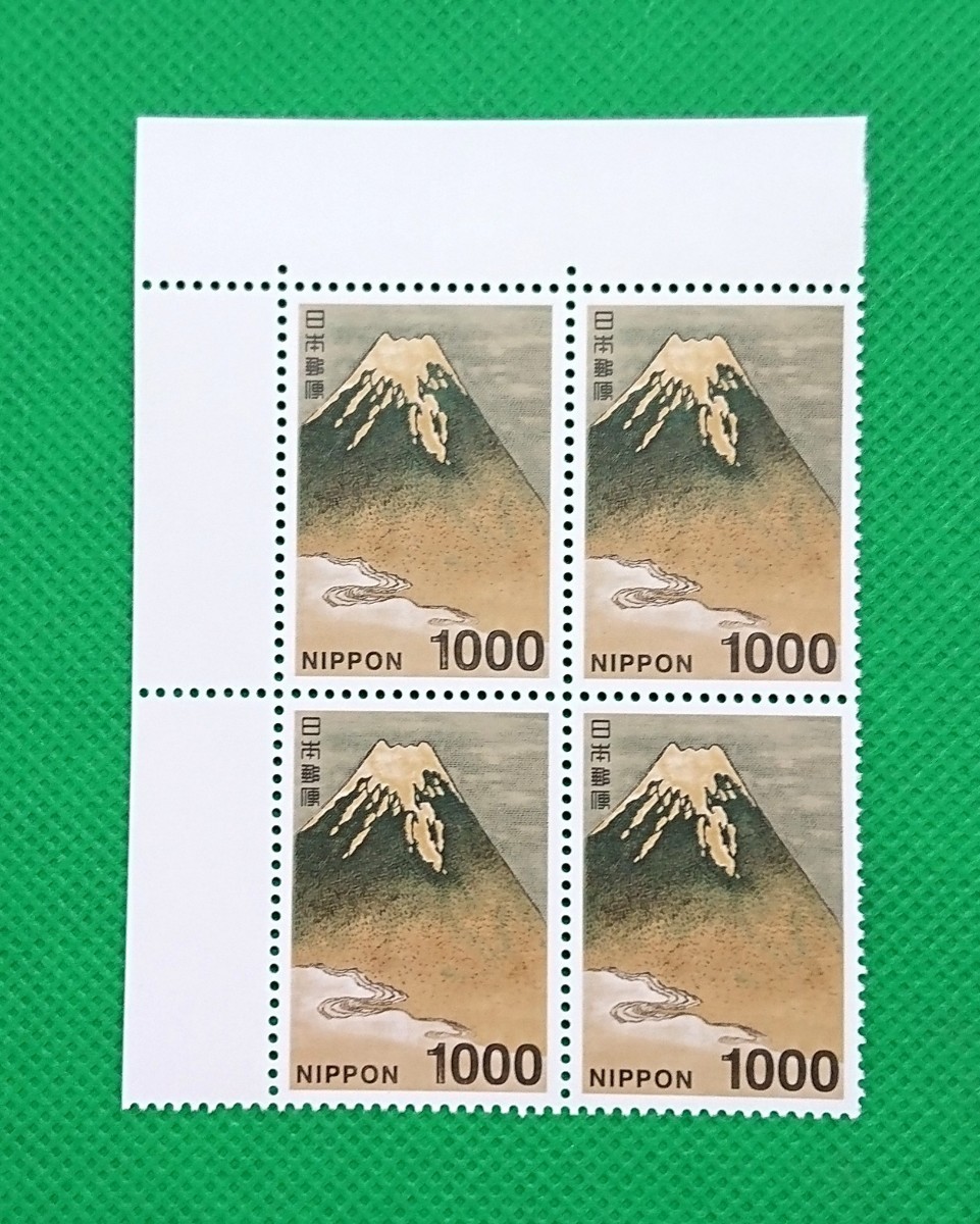 - 富士図/1,000円/4枚ブロック/新日本の自然/NH/極上美品/糊艶良好/シミ無/シワ無/平成27年/絶版/販売終了/未使用/№