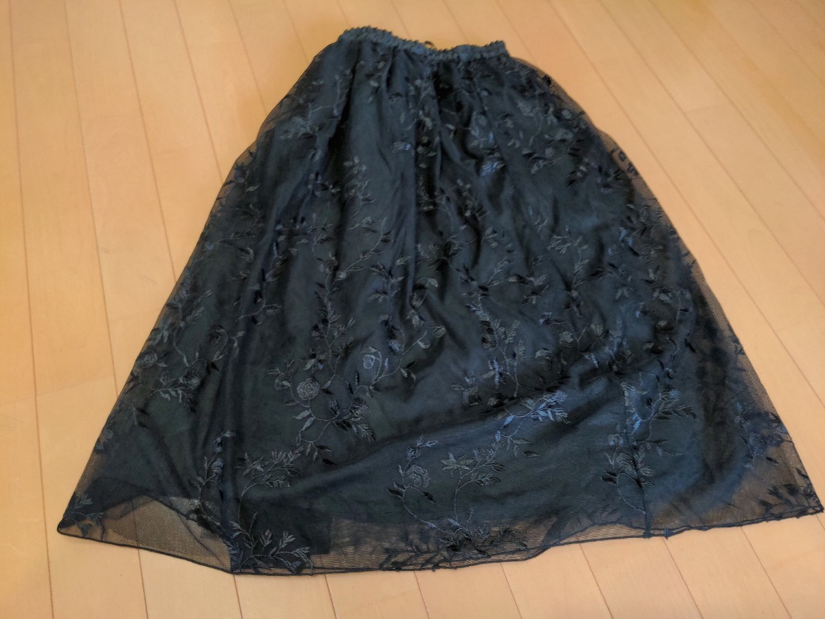 - アースミュージックアンドエコロジー 黒 ヒザ下スカート レース フォーマル 未使用
