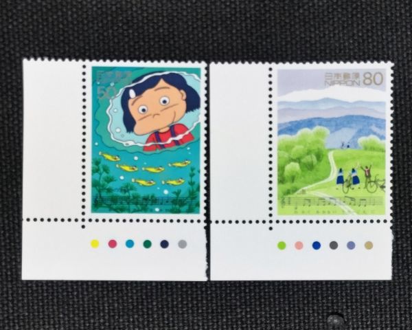 - [23081707]【わたしの愛唱歌・第4集】単片2種 CMカラーマ-ク付「メダカの学校・青い山脈」50円+80円 1998年発行 私の愛唱歌 美品*