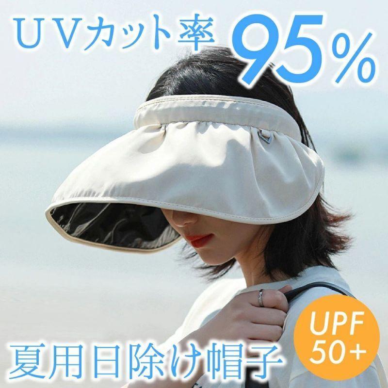 - サンバイザーレディース 紫外線対策 貝殻形小顔効果 カチューシ両用 日焼け防止