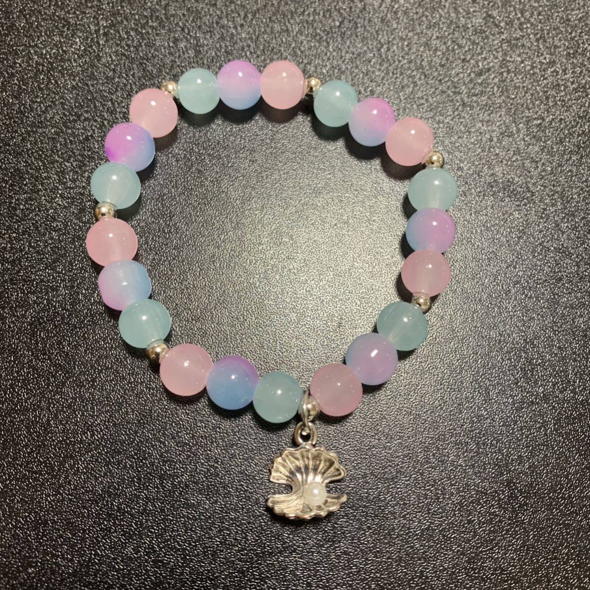 - ミルキーカラー マーメイド フェイクパール付き貝殻 ガラス ビーズ ブレスレット