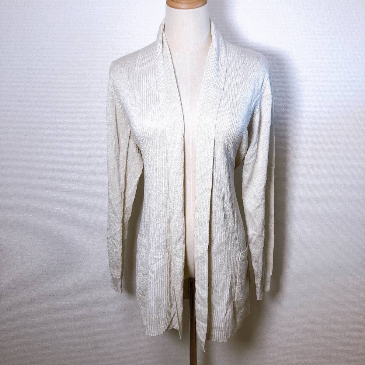- WS0206 美品 index インデックス レディース カーディガン ロング ゴージャス M ゴールド(金) ラメ レーヨン混紡 万能 美しい ワールド