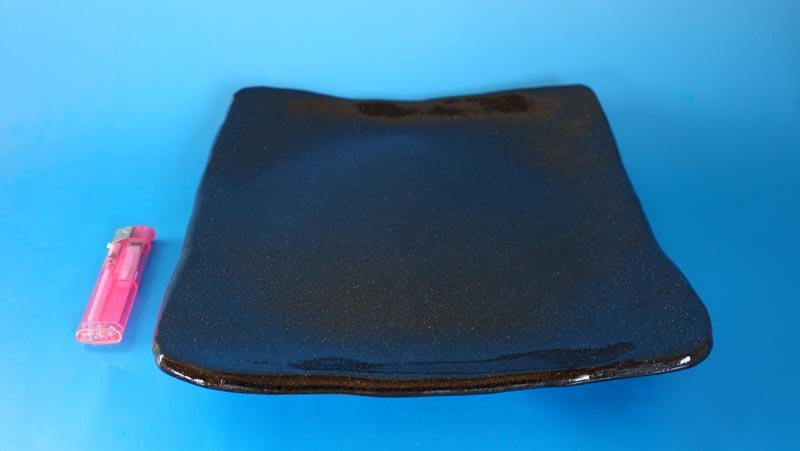 - 黒釉 角皿 ステーキ皿 共箱 勘之 盛皿 26cm×26cm 黒薩摩