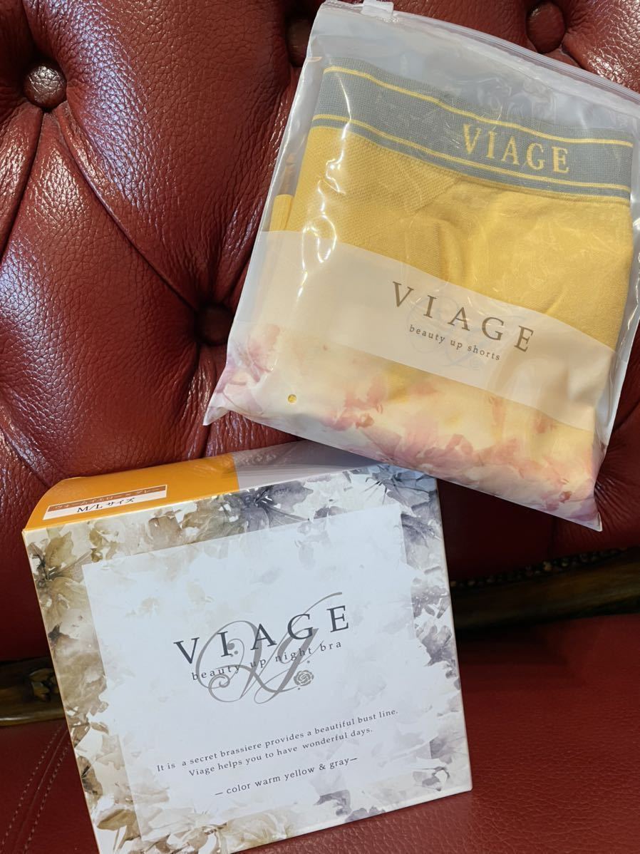 > ◆新品◆ヴィアージュ◆VIAGE◆ナイトブラ【M/L】とショーツ【L】のセット◆ウォームイエロー&グレー◆バストアップ◆ノンワイヤー◆