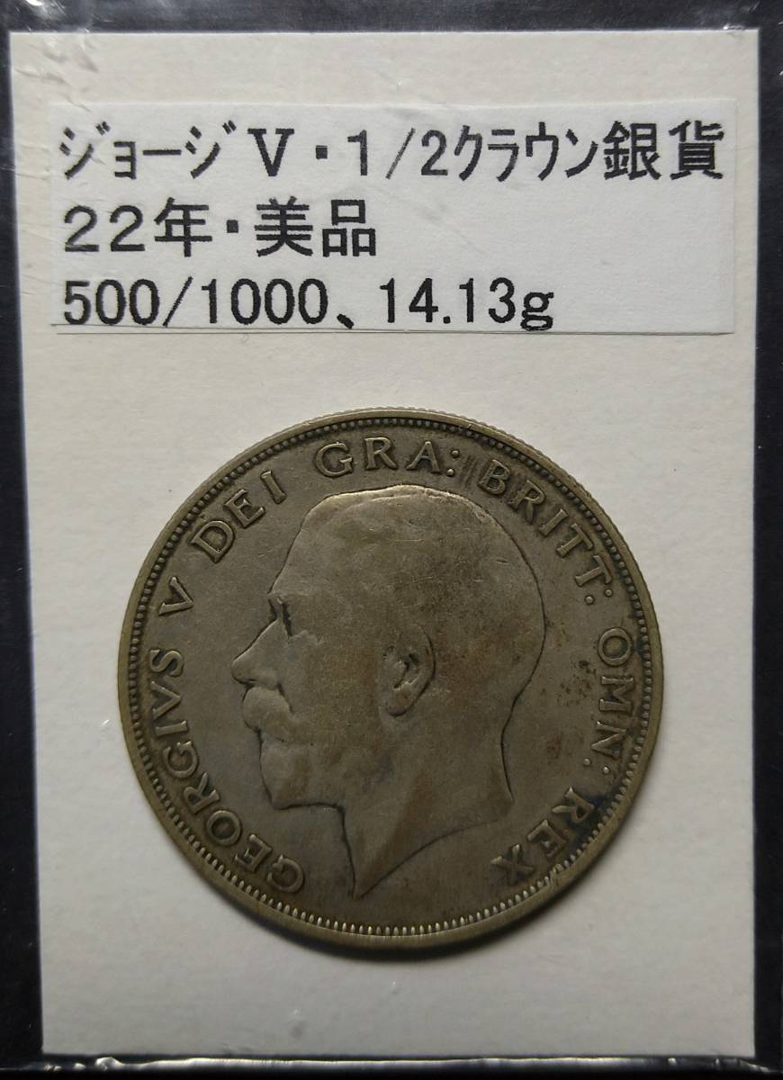- イギリス・ジョージ5世・ハーフクラウン銀貨・1922年(1枚)