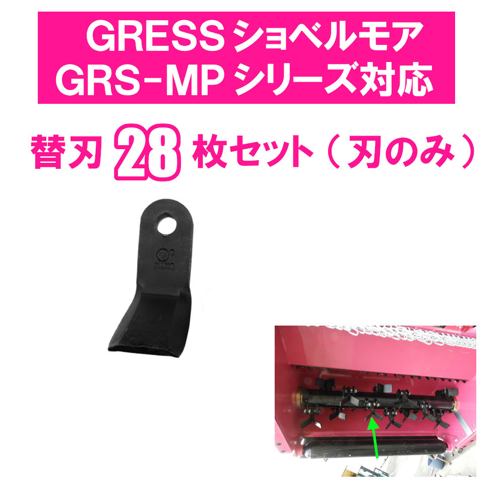 > GRESS ショベルモア コンマ2 専用 替刃 28枚セット ボルトナットなし GRS-MP100対応 刈り込み幅約100cm 油圧ショベル 草刈り 【送料無料】