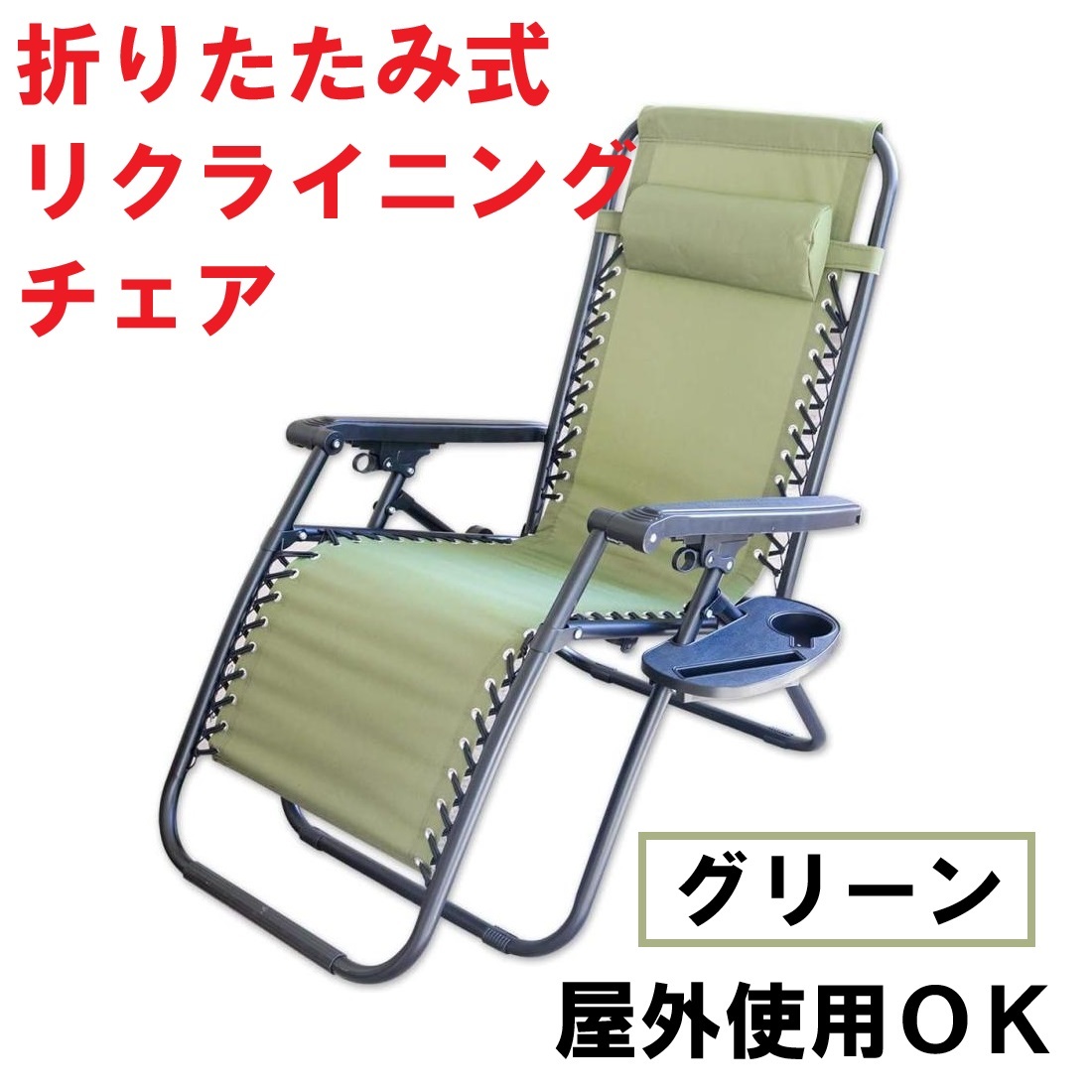 - 折りたたみ式 リクライニングチェア サイドテーブル付き (カラー:グリーン) アウトドアチェア 頑丈 通気性