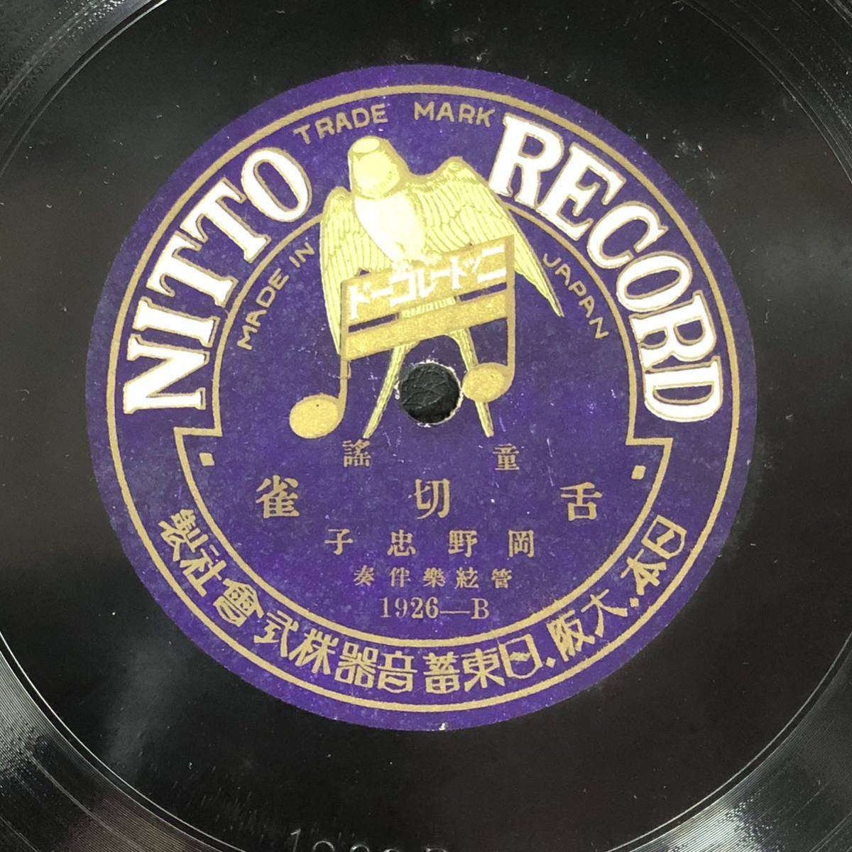 - SP盤 舌切り雀/チヤルメラ(チャルメラ) 童謡 日東蓄音機 NITTO RECORD 岡野 忠子 レコード SPレコード 希少品