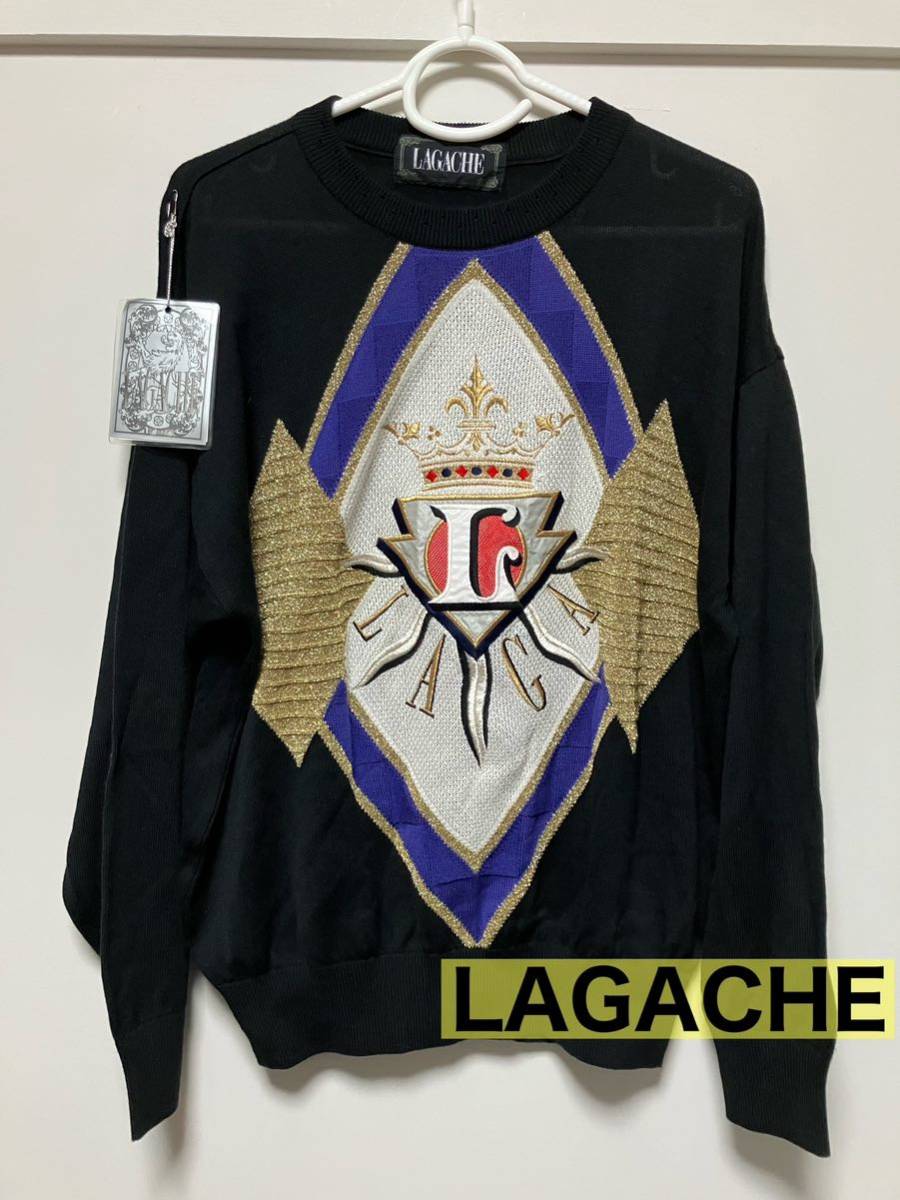 - LAGACHE ラガチェ セーター メンズ ニット 薄手 長袖 刺繍 レトロ M インパクト ヴィンテージ 古着 派手 個性的 一点物