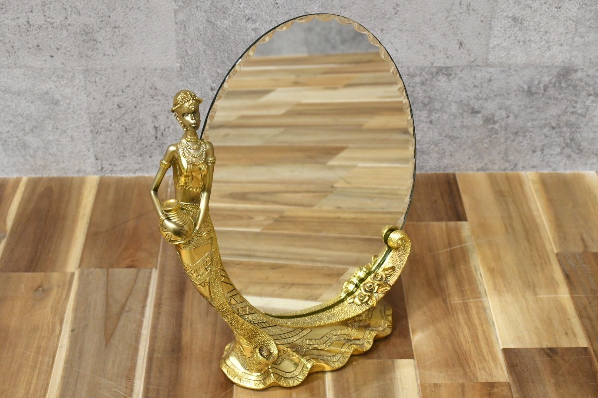 - PB3FS62a 美品 置き型ミラー オブジェ 姿見 鏡 オーバル型 ゴールド インテリア 置物 女性 オーナメント 飾り エレガント