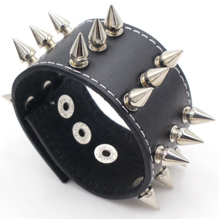 - 送料無料 ステッチ&トリプルラインスパイクスタッズ ブレスレット バングル フェイクレザー ゴスロリ ロック スマアク