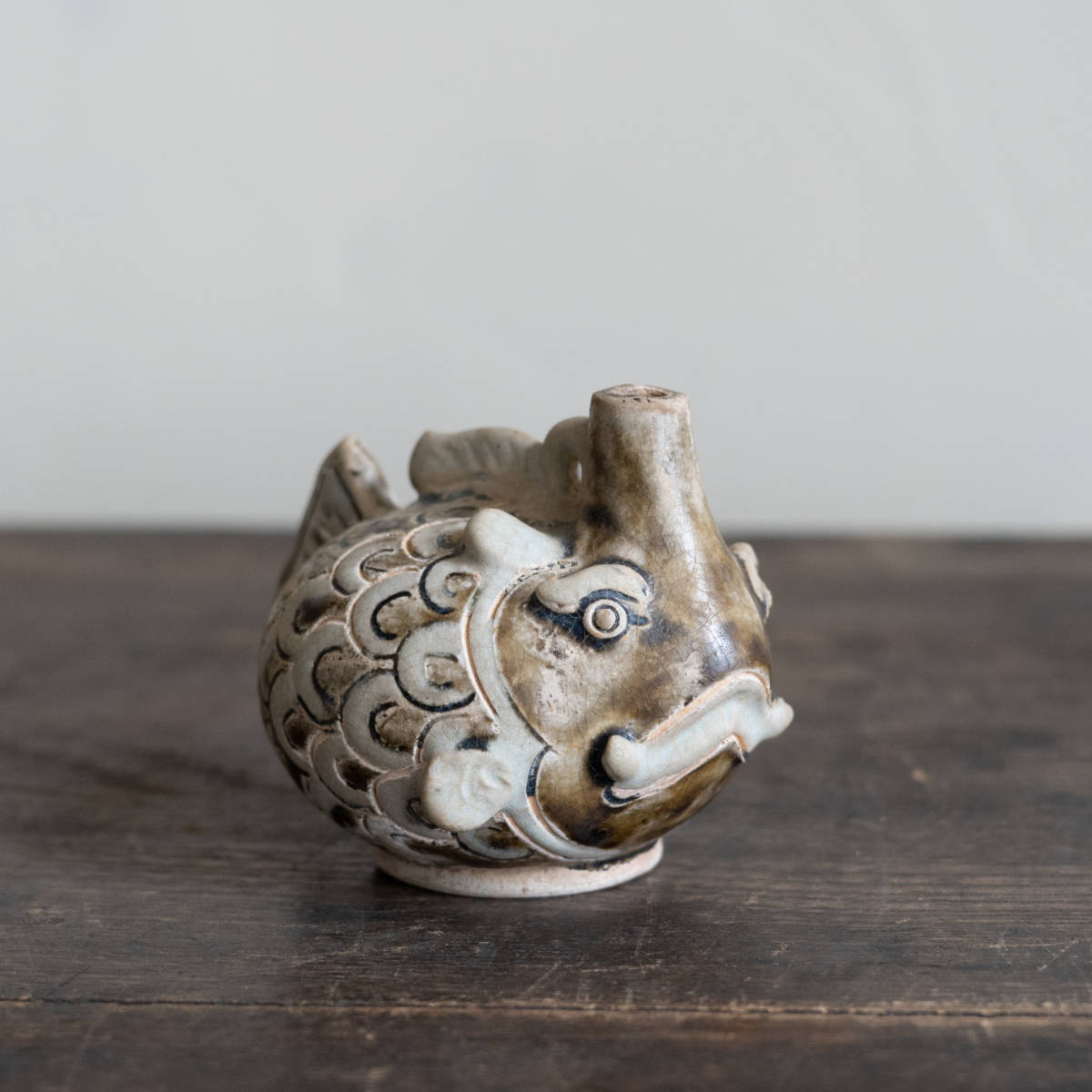 - 水滴 魚 陶器 書道具 文具 / 中国 骨董 古物 時代物 陶器 古玩 オブジェ 置物
