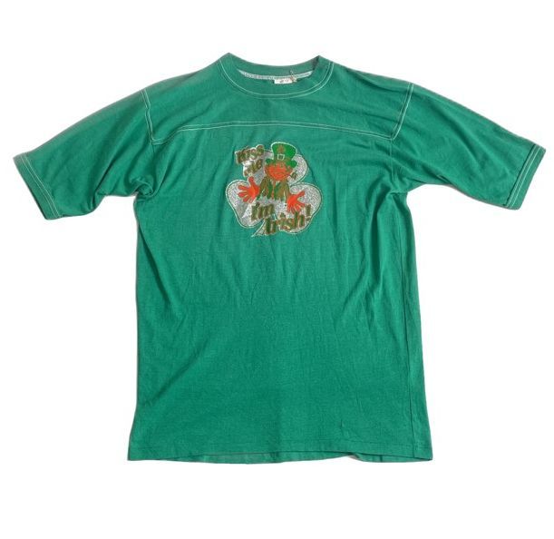 - 80's 米国製 Bantams バンタム Tシャツ フットボール St Patrick Day 両面プリント ラメ グリーン サイズXL [l-0764]