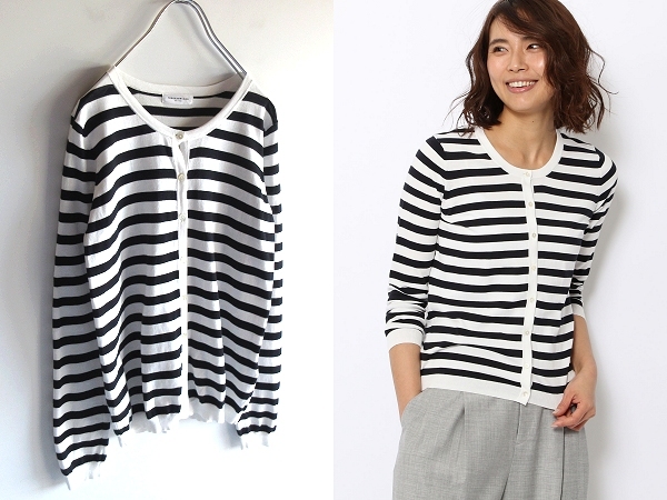 - ネコポス対応 TOMORROWLAND トゥモローランド 2017SS ハイツイストコットン ボーダー クルーネックカーディガン M ブラック ホワイト 白黒