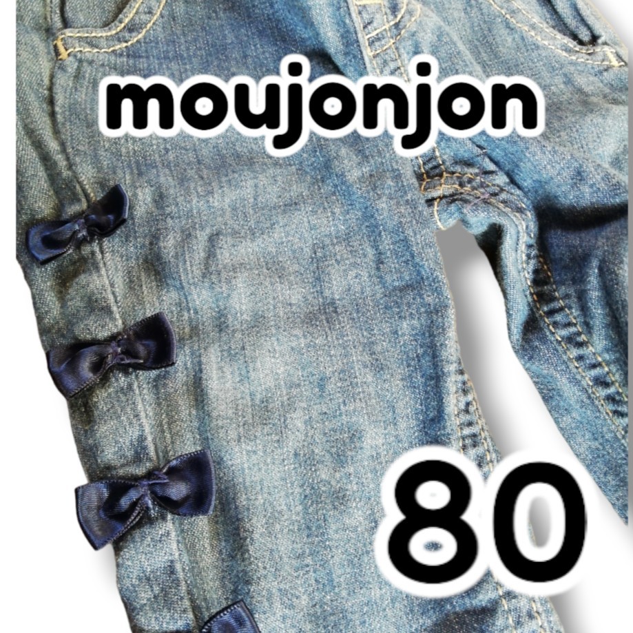 - 【お買得!!】moujonjon ムージョンジョン パンツ ズボン デニム リボン ポケット付き 80cm