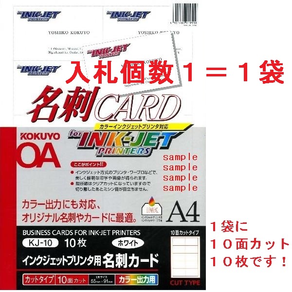 - 即決送料込 送料無料 KJ-10 KOKUYO コクヨ インクジェット 名刺カード 1袋