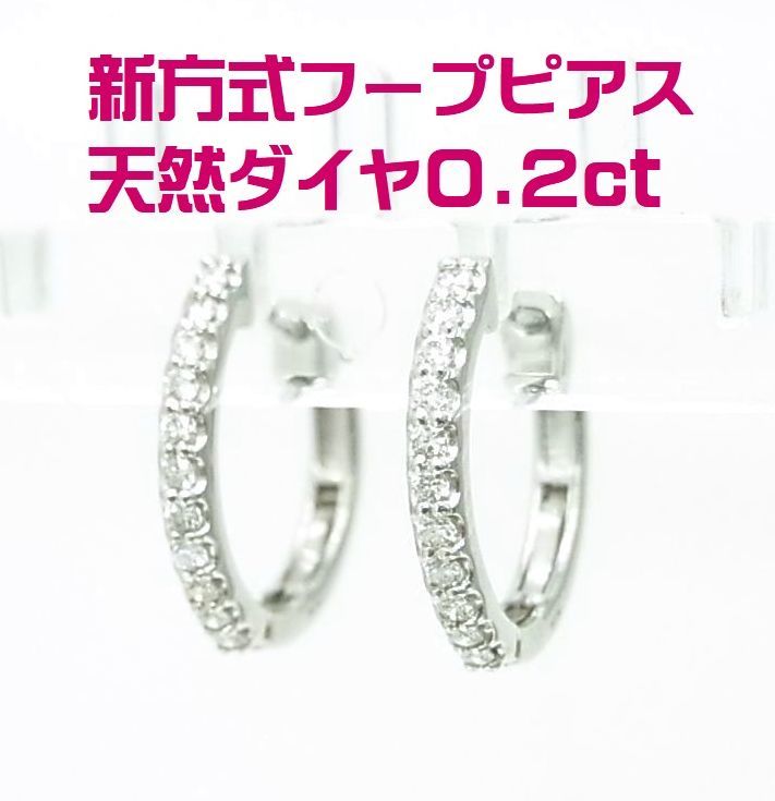 - 板バネ入りなので超使いやすい 天然ダイヤモンド プラチナ エタニティ フープピアス 合計0.20ct 動画あり 送料込