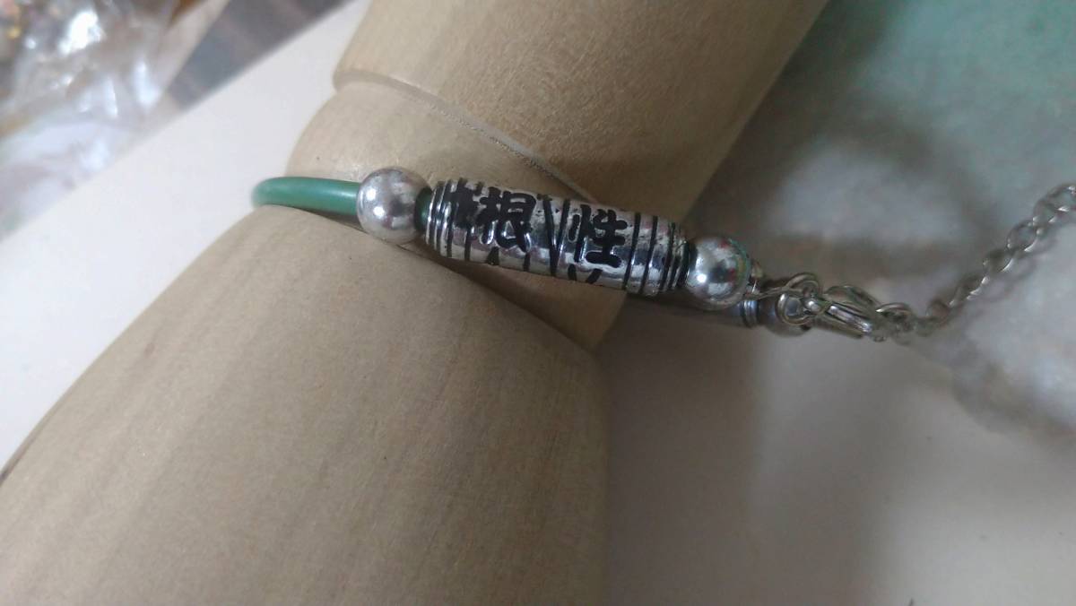 - 根性・刻印 緑×シルバーカラー ブレスレット