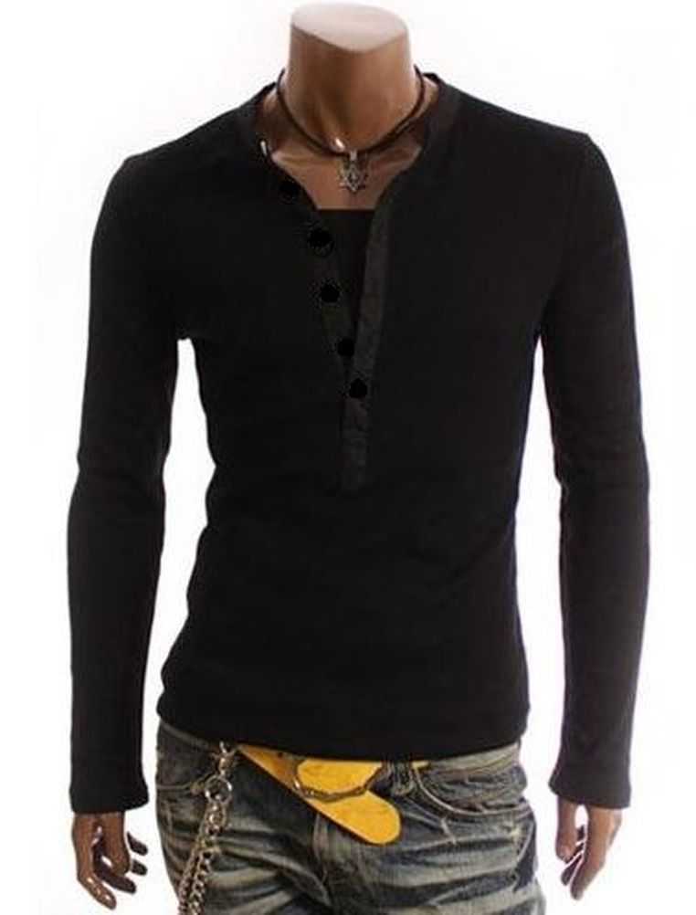 - メ8-7ヘンリー ネック Tシャツ 無地 シンプル スリム ブラック M