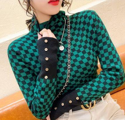 - 【 グリーン★L】韓国 チェック柄 セーター長袖 秋冬 新作 レディース