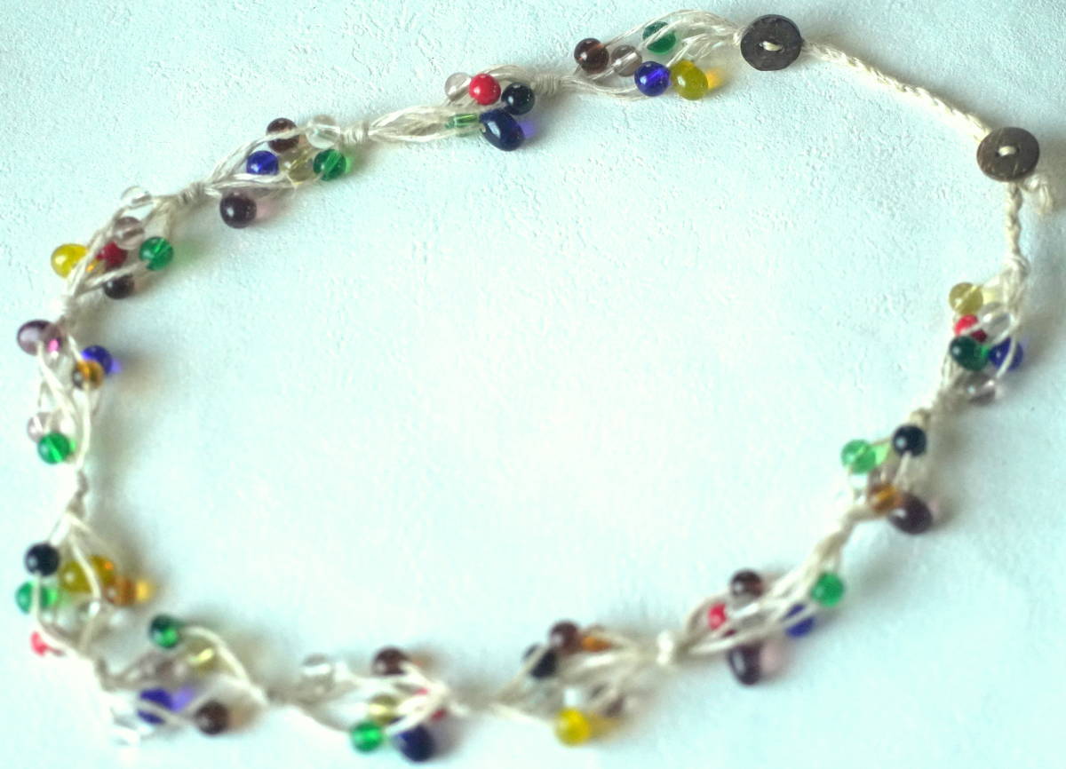 - アジアン エスニック カラフルガラスビーズが編み込まれた紐のネックレス マルチカラー カラフル