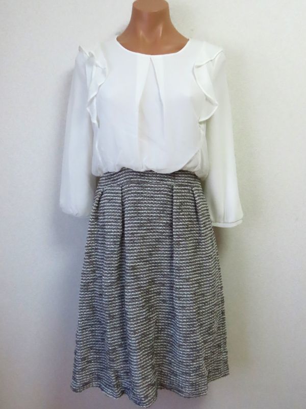 - ☆【新品】Vis ヴィス シフォン×ツイード ドッキングワンピース M