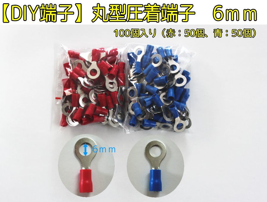 - 【DIY端子】 丸型圧着端子 6mm 12V24V 100個入 接続・分岐に! ①