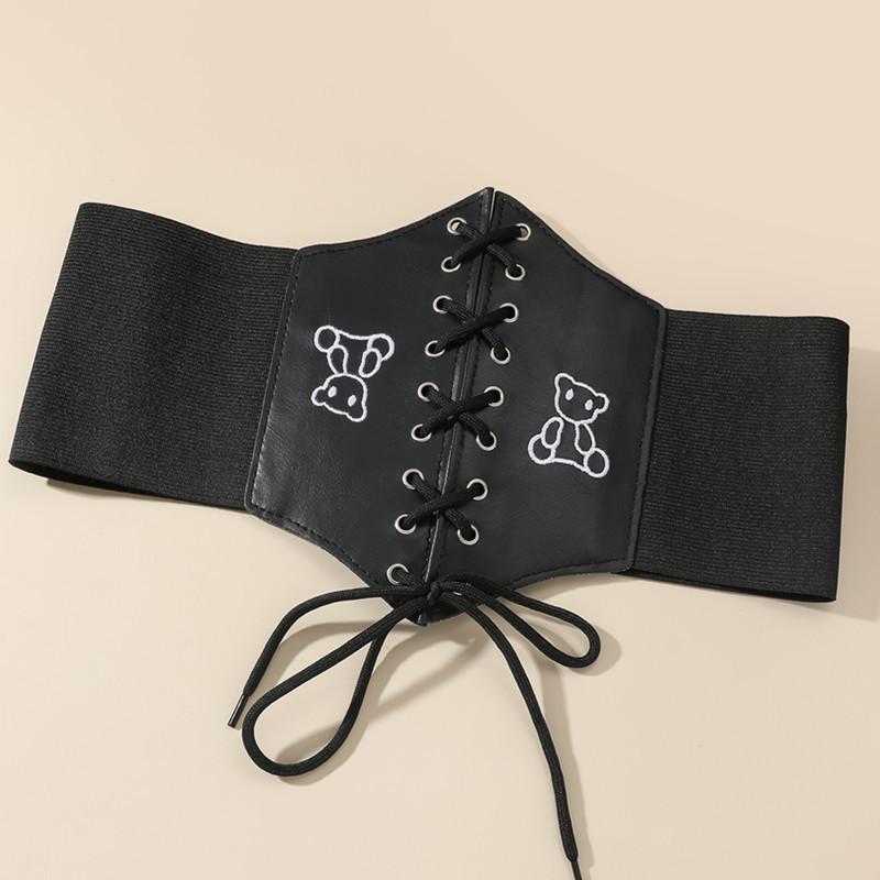 - 【かわいいクマの刺繍】 編上げ コルセット 幅広ゴムベルト レースアップ
