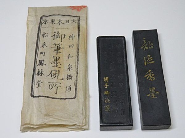 - 明治期頃 中国 等 古墨 2点 まとめて 胡子卿法製 龍〇秀墨◆中国書道 文房具