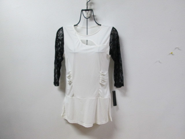- 新品●送料無料◎社交ダンス カットソー 袖レース 胸元セクシーポケット 白