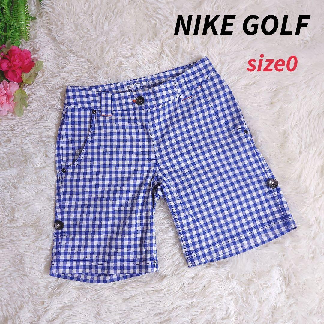 - NIKE ギンガムチェック・ゴルフ用ハーフパンツ・青&白 ストレッチ 表記サイズ0 XS レディース 2WAY 82067