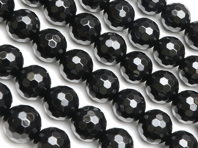 - オニキス 128面カット 丸玉 8mm【1連販売】 / 2-36 OX8MC