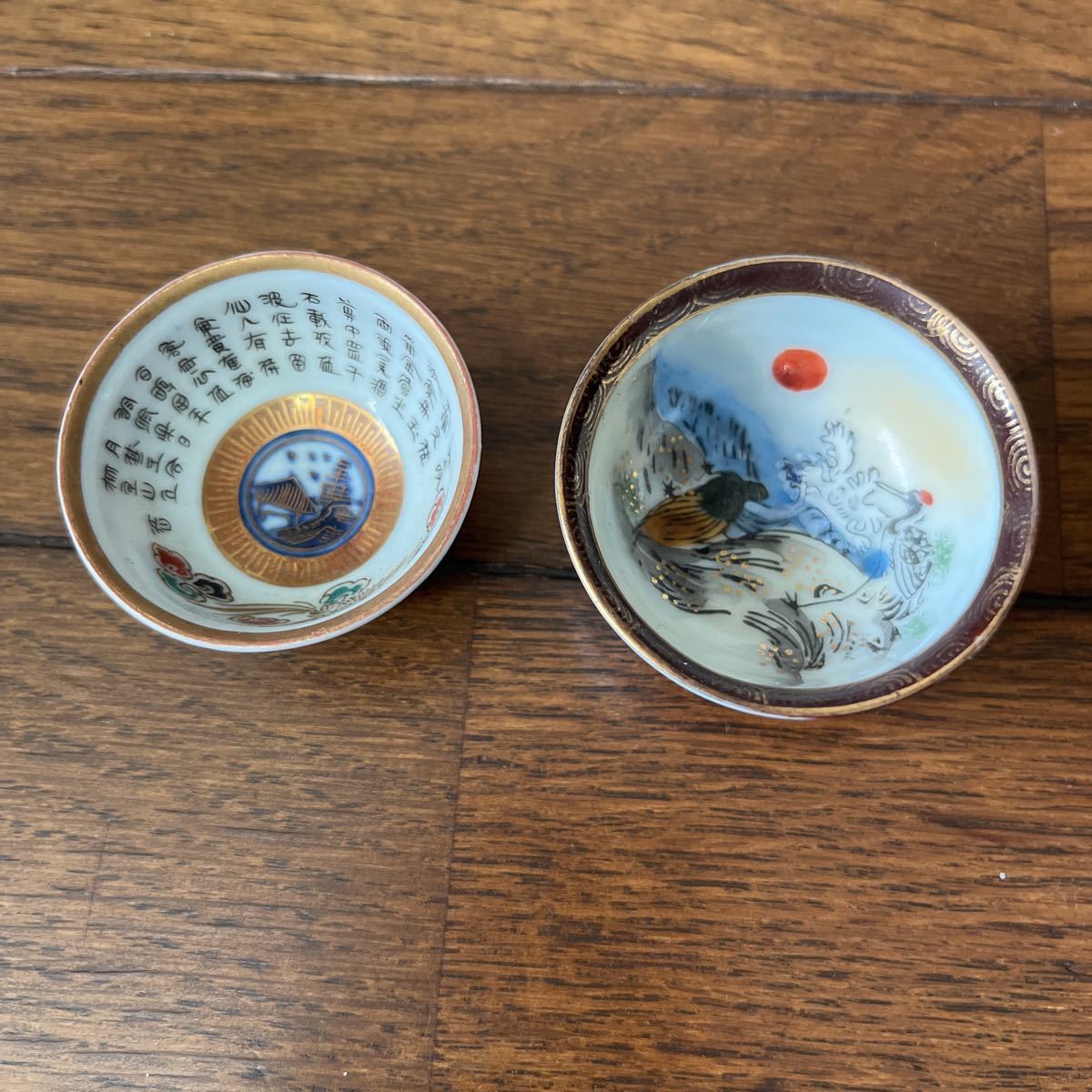- 九谷 猪口二個 盃 綿密な絵付け 素敵な技術 最終処分特価