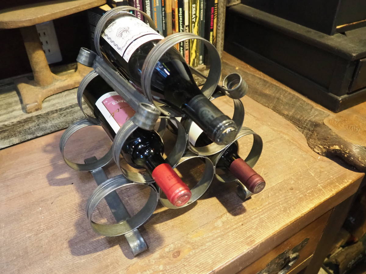 - 【フランス蚤の市6連ワインホルダー】古道具アンティークシャビーキャリー骨董アイアン店舗什器バーインテリアカフェテーブルパーティー