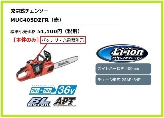 > マキタ 400mm 18V 充電式チェンソー MUC405DZFR (本体のみ) [ダブルナット仕様]【18V+18V→36V】 ■安心のマキタ純正/新品/未使用■