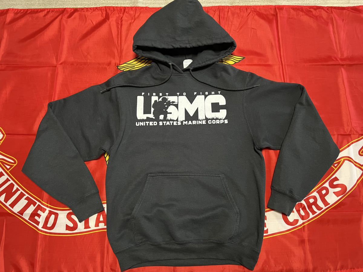 - 中古美品 USMC FIRST TO FIGHT フーディ Sサイズ BLACK
