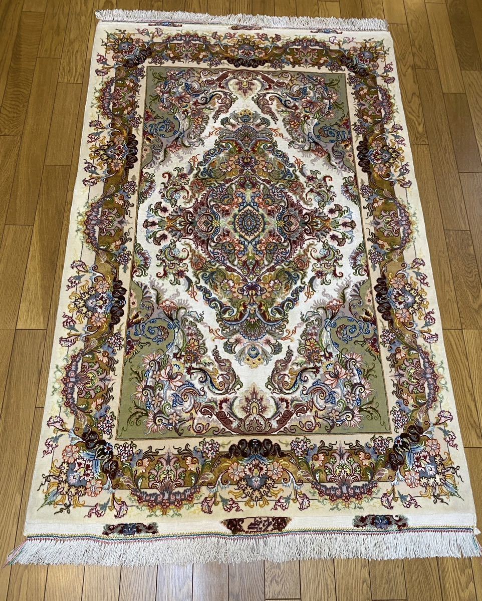 > ⑥ ペルシャ絨毯 イラン直輸入品 シルク・コルクウール 手織り タブリズ産 カーペット [98×154cm] 未使用品 重さ3600g