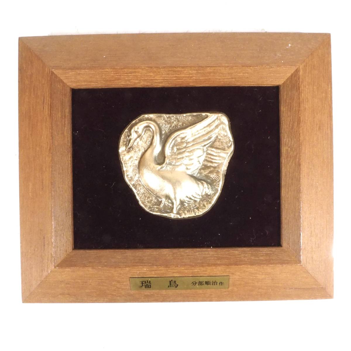 - 昭和ビンテージ 彫刻家 元日展理事 分部順治作 額装ブロンズレリーフ『端鳥』 在銘「順」 銅製 落款有 額 壁掛け 壁飾り 箱無し TNI510