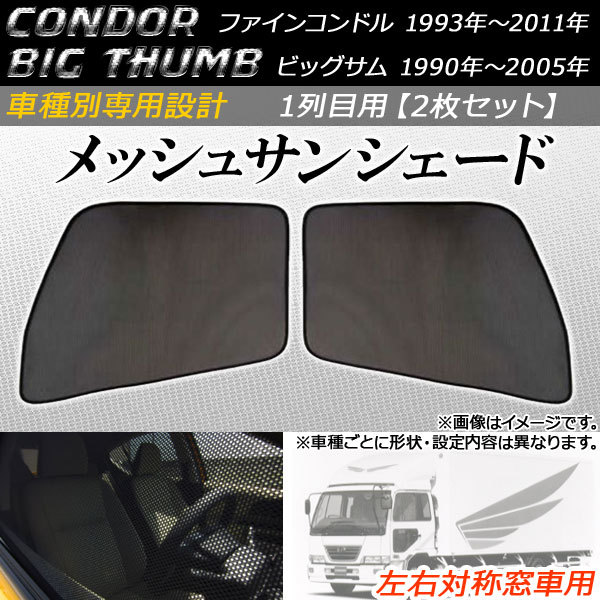 - メッシュサンシェード ニッサンUD ファインコンドル/ビッグサム 左右対称窓車用 1990年~2011年 はめ込み式 1列目窓用