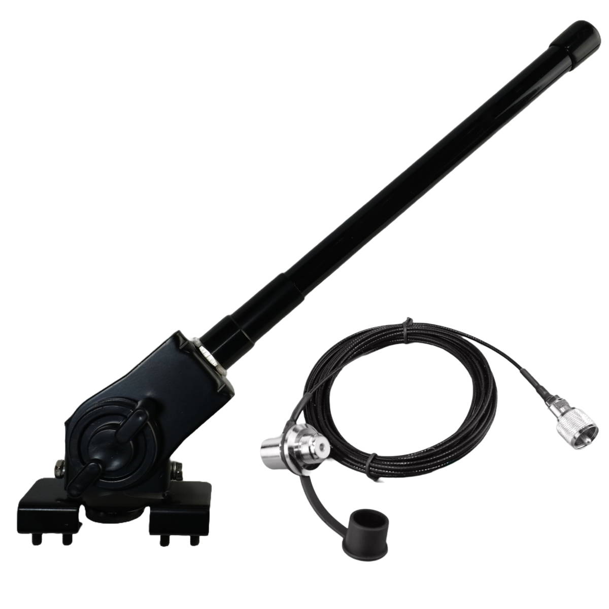- 送料無料 22cmデュアルバンドアンテナ(黒) 2軸可動式ハッチバック/トランクアンテナ基台 RG316(1.5D-2V相当)同軸ケーブル5m MJL-MP接栓