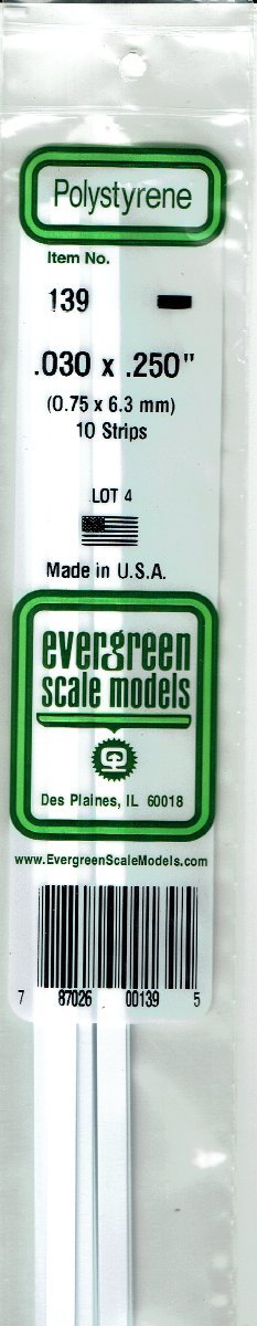 - エバーグリーン .030x.250 プラ棒 0.75x6.3mm 10本入り
