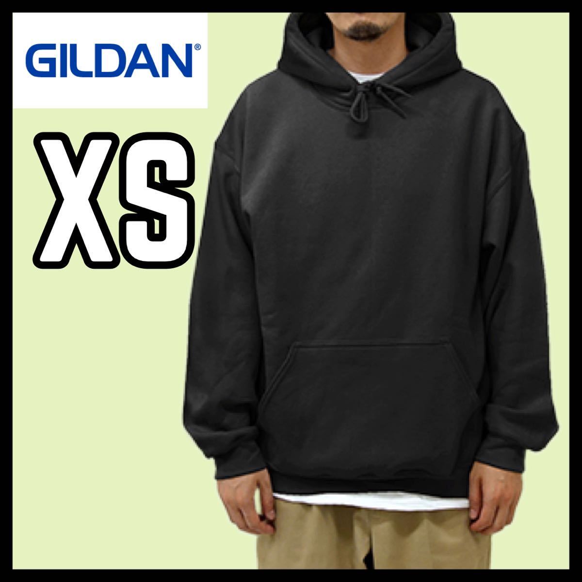 - 新品未使用 GILDAN ギルダン 8oz プルオーバーパーカー 無地かぶりパーカー 裏起毛 ブラック XSサイズ ビッグシルエット フード