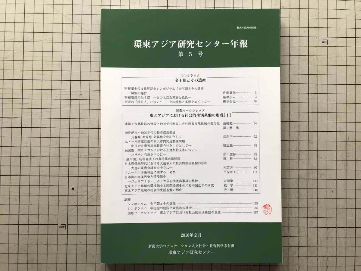 > 『環東アジア研究センター年報 第5号』金王朝とその遺産・東北アジアにおける社会的生活基盤の形成1 2010年刊 ※哈爾濱金代文化展 他 08580