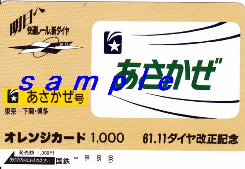 - 国鉄オレンジカード(未使用)61.11ダイヤ改正記念 あさかぜ号 ヘッドマーク 明日へ快適レール新ダイヤ