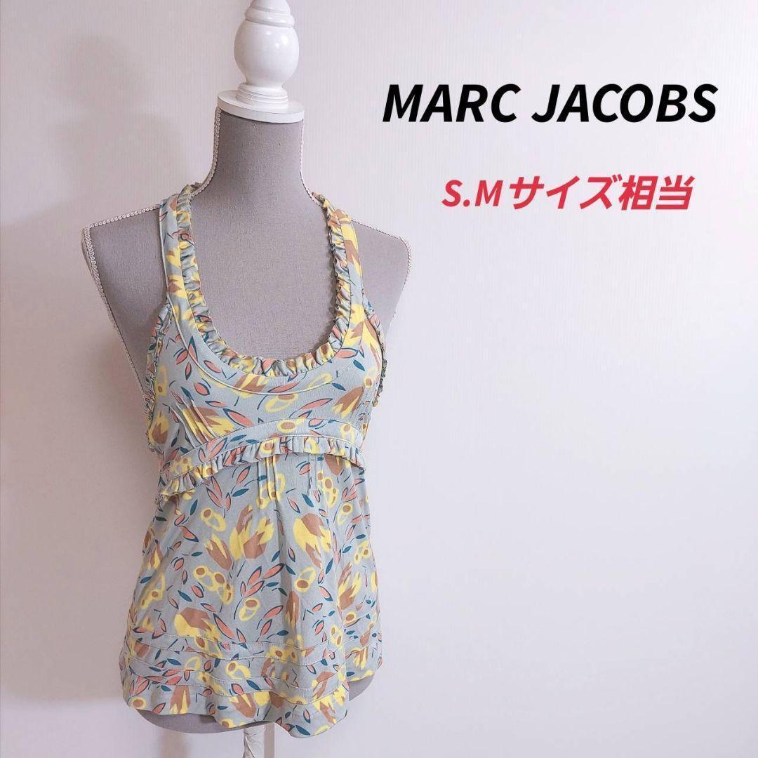 - MARC JACOBS フリル使い&オープンバック 総柄キャミソール S.Mサイズ相当 ストレッチ くすんだ水色&黄色&ブラウンベージュ&青&ピンク Y2K
