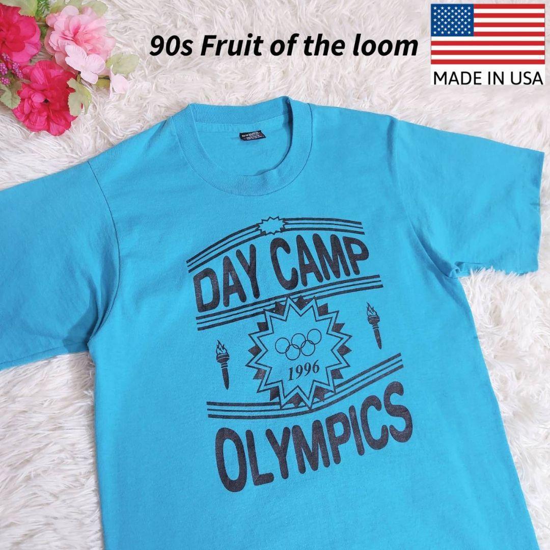- USA製 90s fruit of the loom プリントTシャツ アメリカのボーイズの14-16 青ブルー系90年代シングルステッチ丸胴 67742